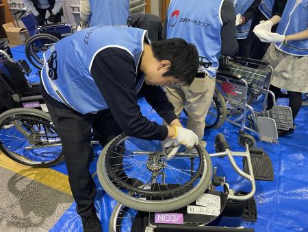 自動車整備のプロとして培ってきた技術を生かし、静岡市内で市民の皆様に貸し出しを行っている車いすの点検・清掃を行いました。